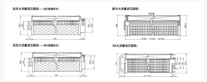 大流量濾芯大直徑設計高 效過濾,內外均有高強度支撐骨架,采用多層復合漸進過濾材料,
